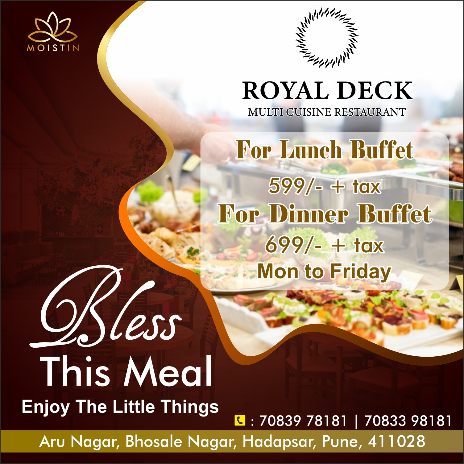 LET THE DELICIOUSNESS STRIKE YOU. With our buffet menu Call us for table reservations-7083978181/ 7083398181 Follow us for more information